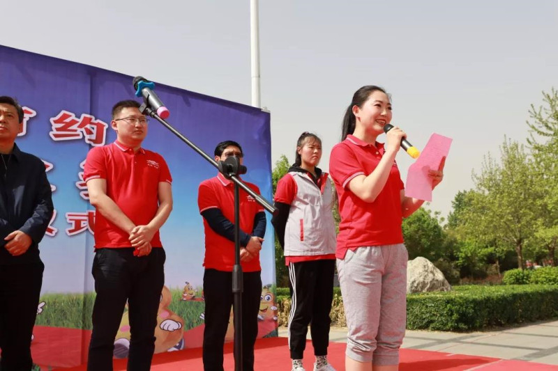 工作人员宣读《内丘县2019年“万步有约”健走激励大赛倡议书》。