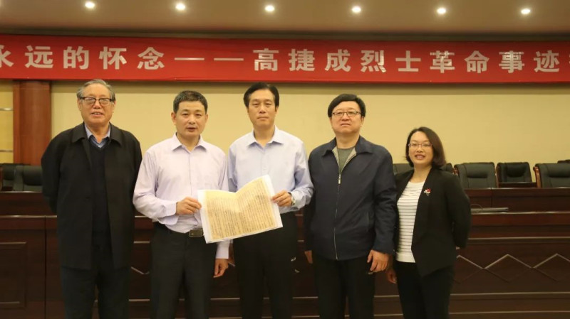 缅怀先烈,开创未来。5月12日,我县开展“不忘初心、牢记使命”主题教育,邀请高捷成烈士之孙——高庆麟作题为“一封红色家书的革命嘱托”的高捷成烈士事迹报告会。县委副书记王俊国主持报告会,县人大常委会副主任郝明珂、副县长秦中堂、县政协副主席南燕与现场党员干部一同聆听了报告会。