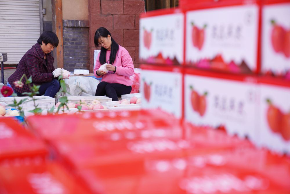 ↑10月27日,岗底村果农将采收的苹果套袋装箱。收获时节,河北省邢台市内丘县岗底村3500余亩标准化种植的苹果进入采摘季,当地果农忙着采收苹果,供应各地市场。新华社记者朱旭东摄↑10月27日...